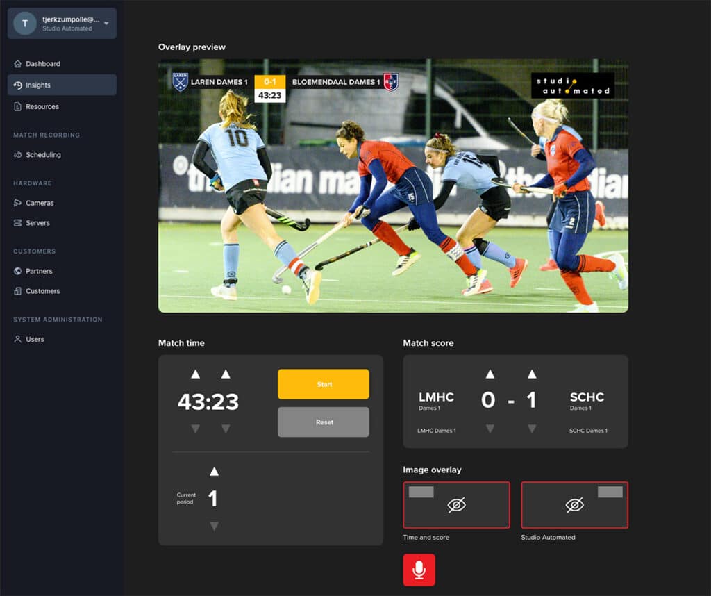 Take control of your broadcast with our intuitive Studio Automated dashboard. This powerful interface puts everything at your fingertips – from real-time camera management to creation of scoreboard/timer graphics. Monitor multiple feeds simultaneously, adjust settings on the fly, and create compelling content with just a few clicks.